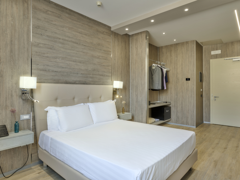 L’Hotel Tre Ville di Parma dispone di 5 camere SUPERIOR di cui 4 con accesso diretto al giardino o cortiletto privato attrezzato di tavolino e poltrone, accoglienti con un design moderno e una SUITE composta da camera letto, salotto con divano letto scrivania e ampio bagno con doccia dual. Funzionali e silenziose, le nostre camere sono dotate di ogni comfort, per rendere il vostro soggiorno ancora più piacevole, tra cui: